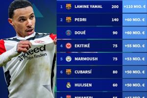 1-亚马尔,巴萨,现身价2亿,增长1.1亿